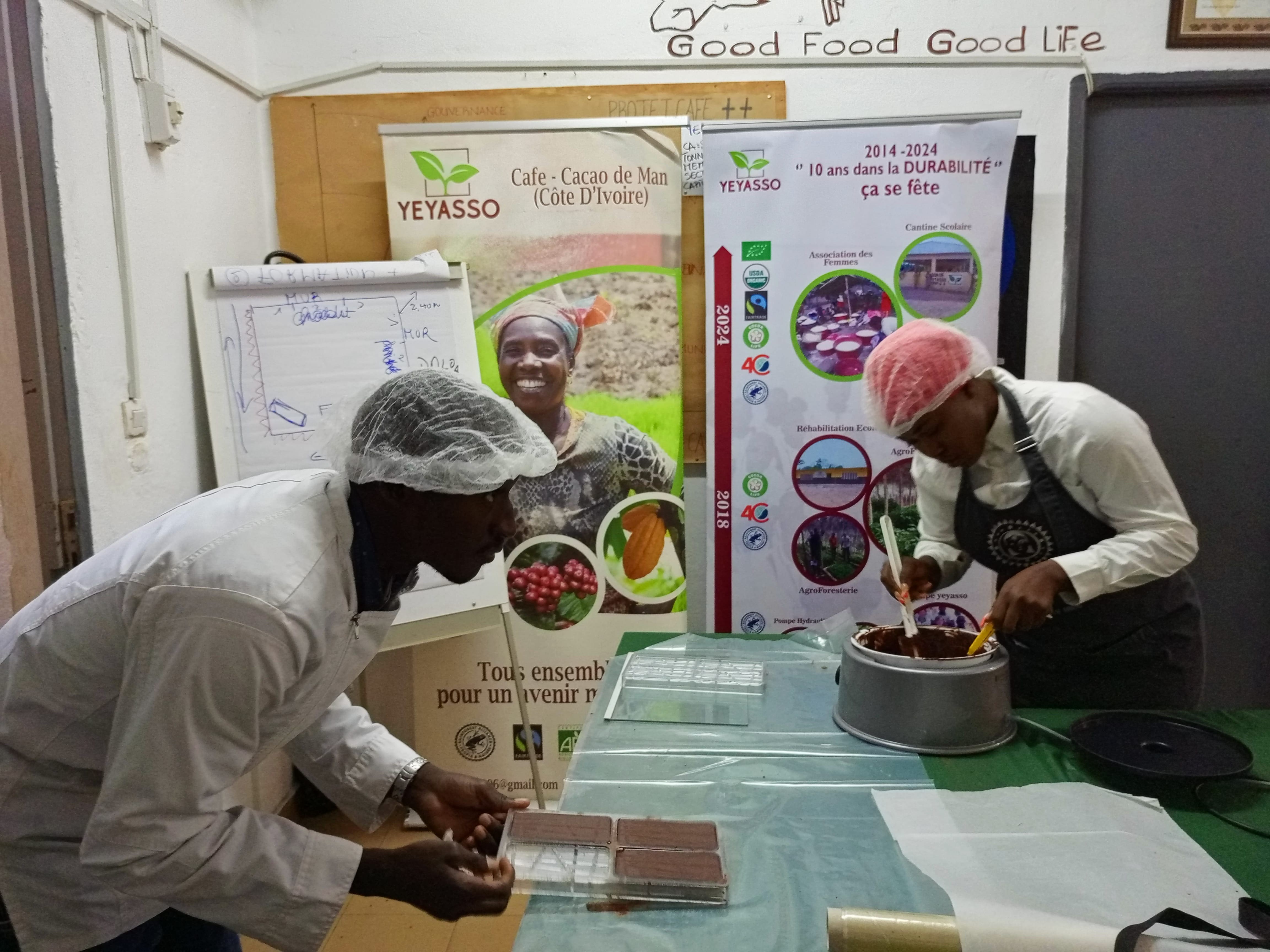 YEYASSO is a coffee and cocoa cooperative based in the city of Man, in north-western Ivory Coast, 560 km from Abidjan. Founded in 2006, it is Fairtrade and Rainforest Alliance certified for cocoa, as well as 4C certified for Robusta coffee (around 30% of its members grow both). The cooperative has recently started producing small volumes of organic cocoa.